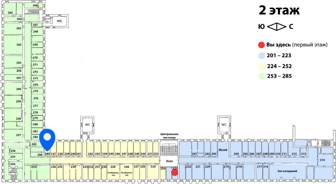 найдите кабинет 285 по правой стороне в конце коридора