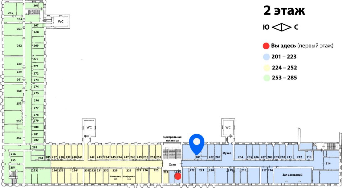 найдите кабинет 201 по левой стороне