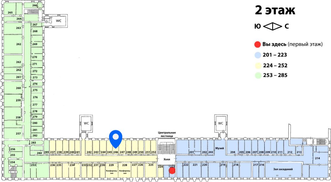 - Поднимитесь на 2 этаж по центральной лестнице;